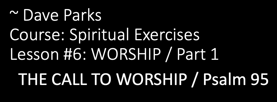 The focus of this Part 1 of this lesson on the spiritual exercise of WORSHIP is just to emphasize The Call to Worship. This psalm begins with the call to worship: